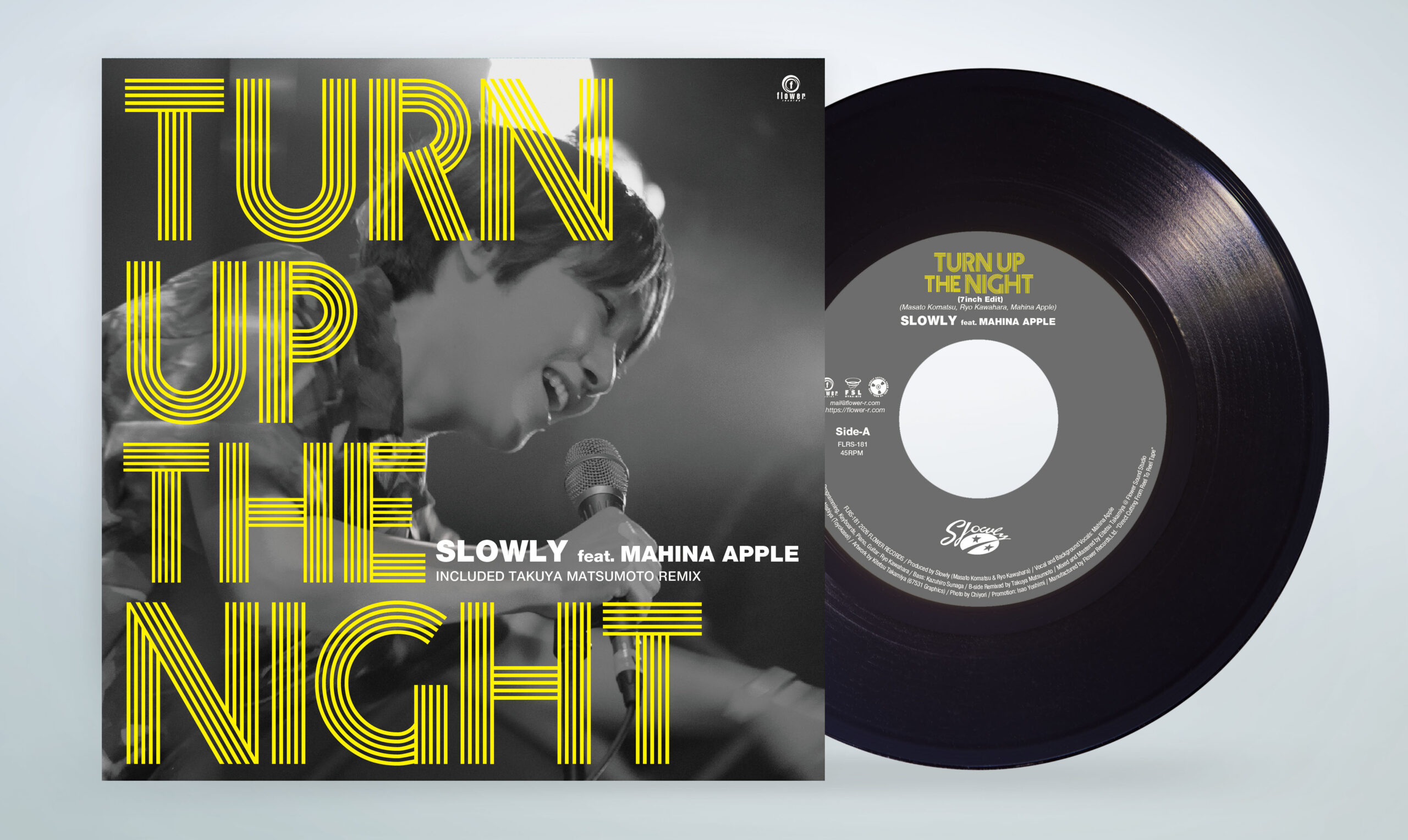 Slowly『Two Steps Ahead』から、Mahina Appleとの“Turn Up The Night”がシングルカット。ディスコレゲエのグルーヴに、フロア映えする歌声が溶け合う、アルバム屈指のダンサブル・チューン。B面には、世界が注目するTakuya Matsumotoによるリミックスを収録。